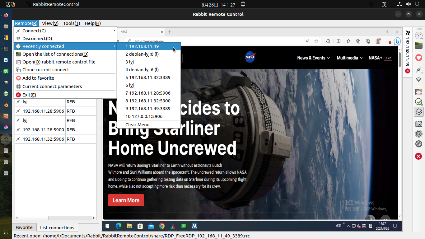 # Install package flatpak --user install RabbitRemoteControl_v0.0.36_Linux_x86_64.flatpak # Run flatpak run io.github.KangLin.RabbitRemoteControl # Or click the desktop icon to run
