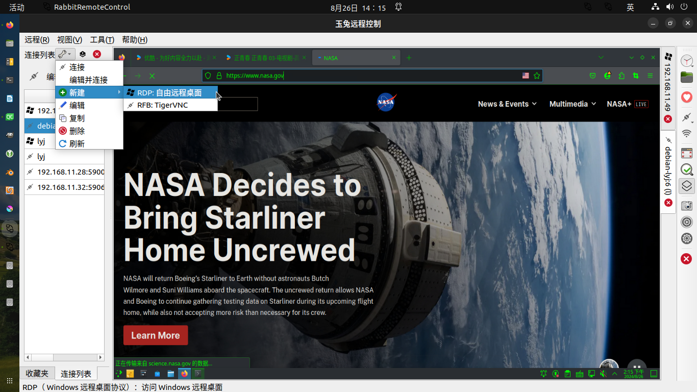 # 安装包 dnf install rabbitremotecontrol-0.0.36-1.fc41.x86_64.rpm # 运行 rabbitremotecontrol # 或者点击桌面图标运行